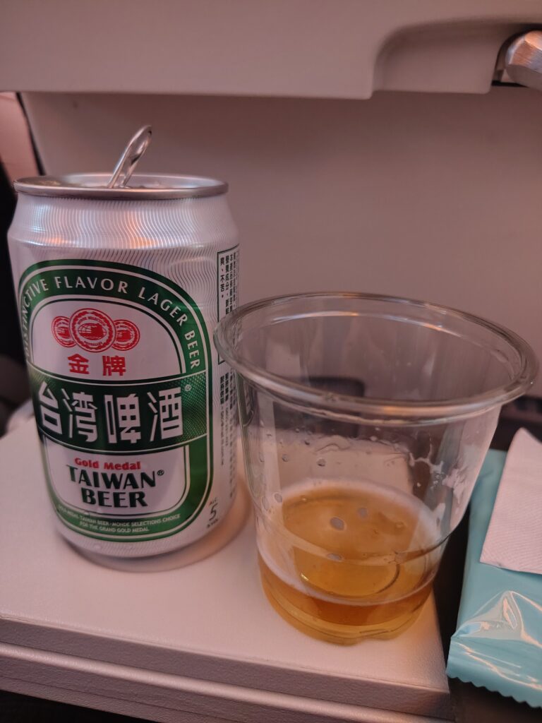 Nástup proběhl v pořádku, jen jsem si ve stresu zapomněl vzít sluchátka, čímž jsem se odsoudil k četbě, případně sledování němých filmů. Na palubě se ptali, co budu pít, tak jsem, po česku, zvolil pivo. Taiwanské. Nebylo to úplně k nepití, ale Braník, v rychlosti vylemtanej před terminálem, proti tomu chutnal jako Plzeň od Vejvodů.