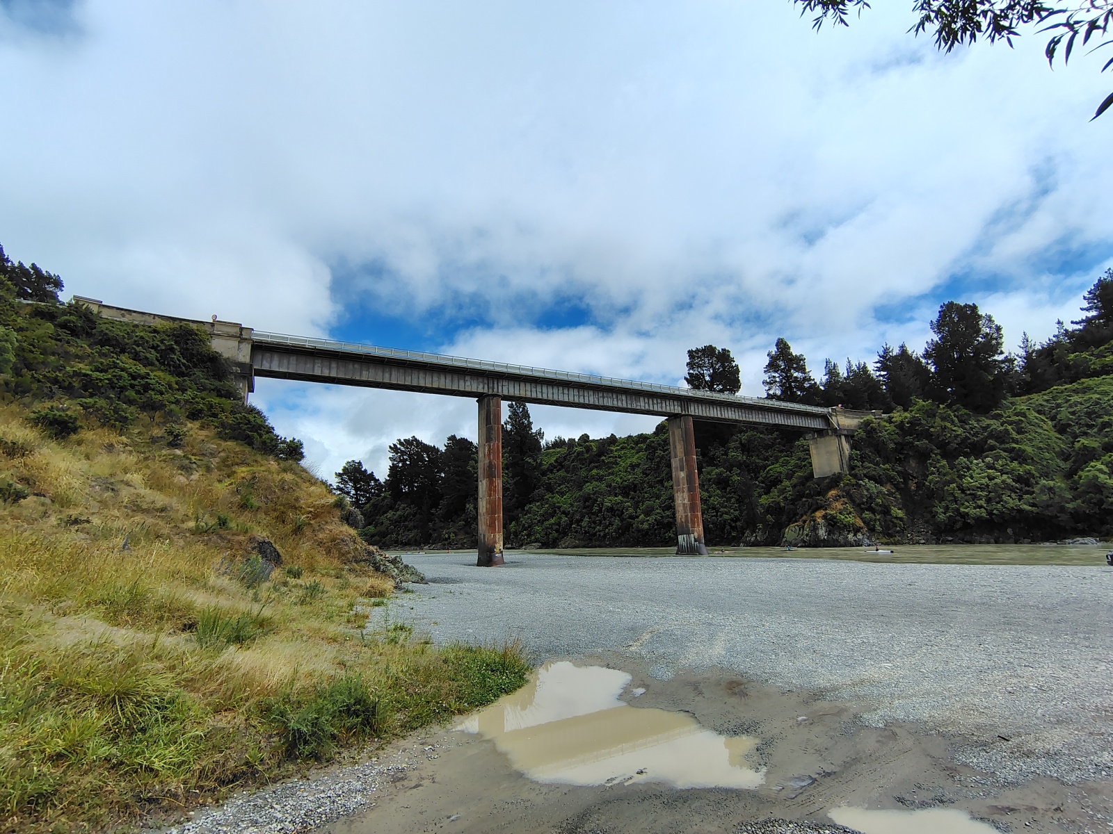 První zastávka byla u malebného mostu, s množstvím 4WDs, kajakáři, a pár backpackery. Dolů jsem si se svým terénním speciálem, kategorie předohrab a břichoplaz, za mírnýho deště netroufl, jen jsem tam slezl pěšky. Kolemjedoucí na mně koukali jako na blázna, takže měli patrně přesnější odhad, než by si vůbec pomysleli.