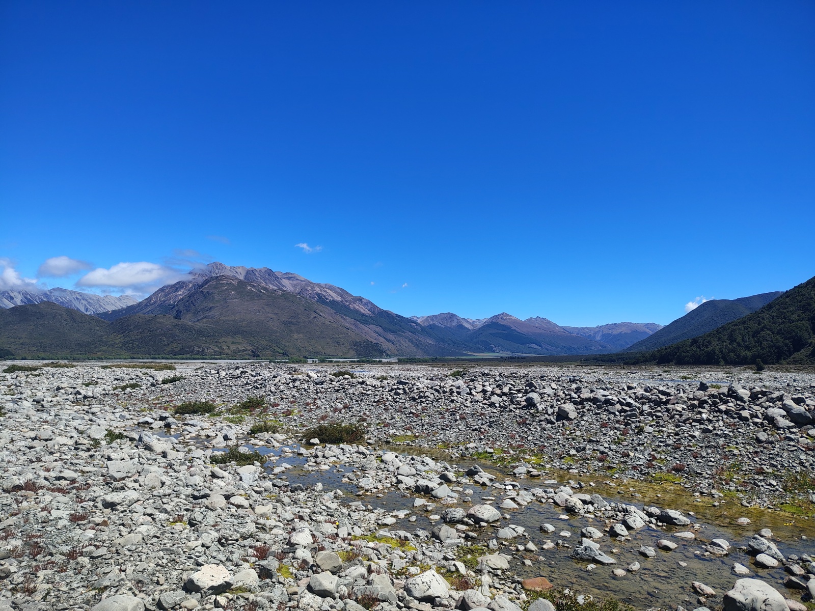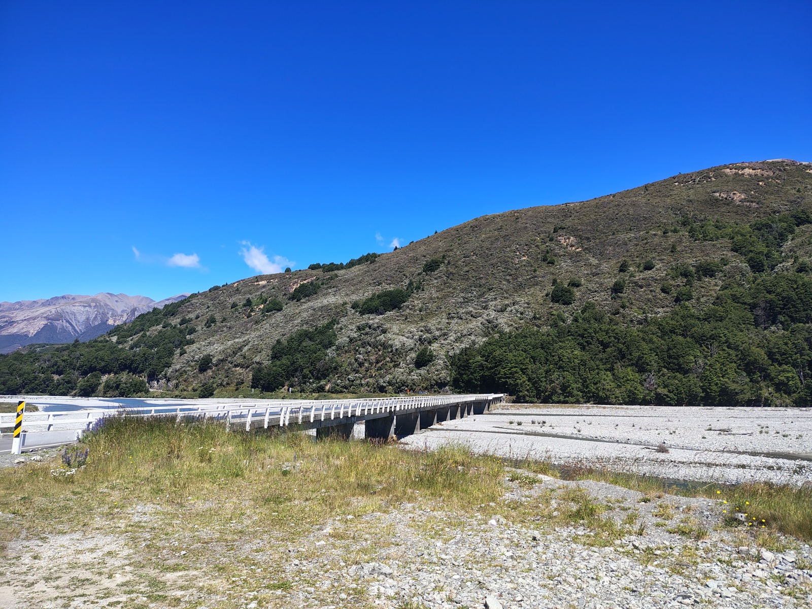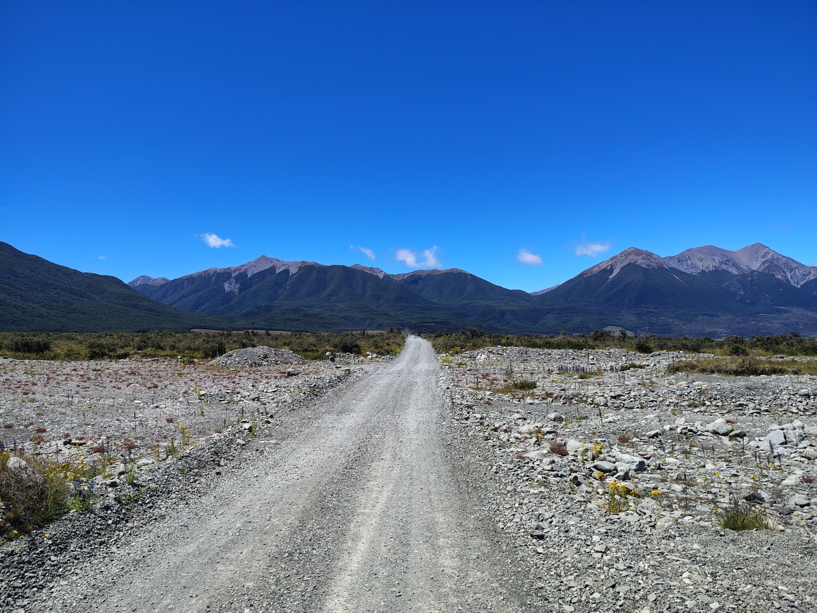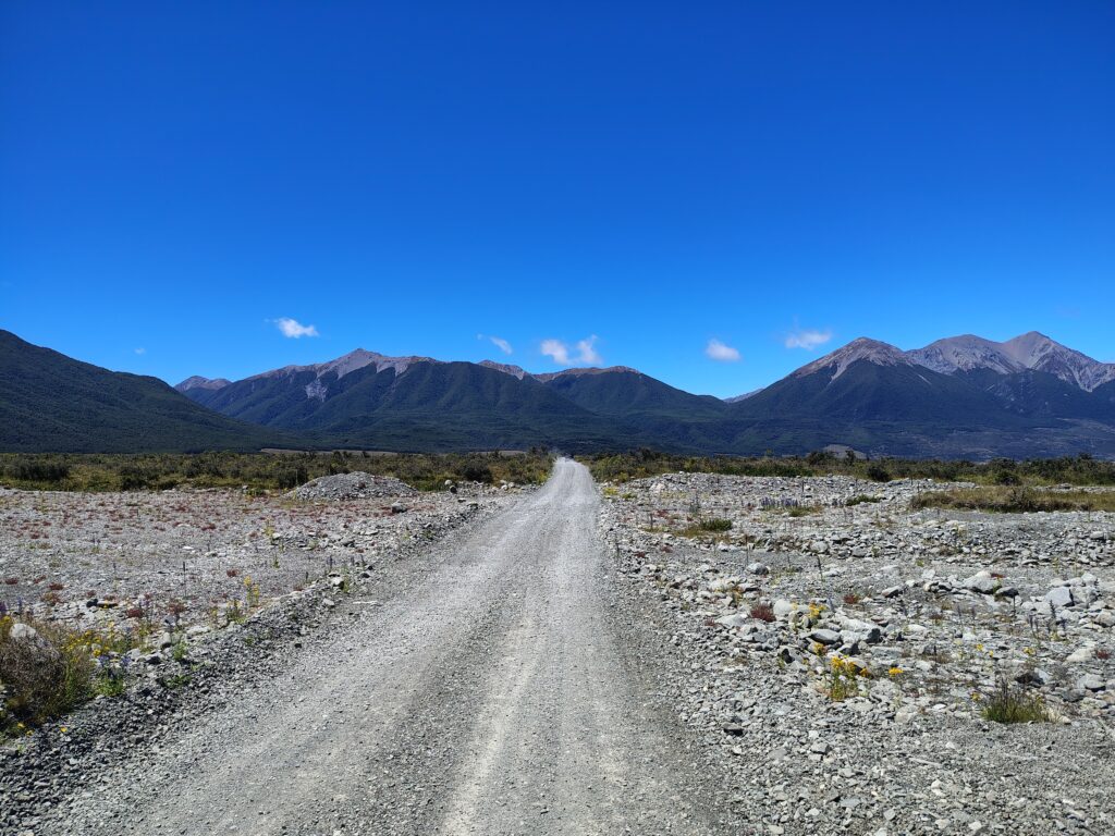 Pak se krajina náhle začala zvedat, a hory se z obzoru přesunuly přímo přede mně. Stejně pohoří, ke kterýmu jsem vyrážel pár měsíců zpět, jen kousek severnější část, včetně národního parku Arthur’s Pass.