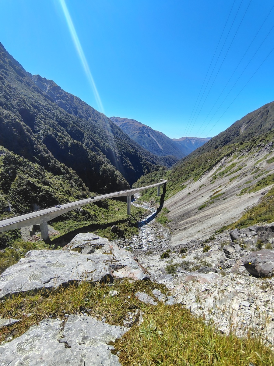 Cestou skrz hory jsem už víc stál, než jel. Hezčí výhledy jsem nikdy neviděl, a už asi ani neuvidím. Nekonečný průsmyky, řeky, jezera, hory až do mraků. Navíc se ukázalo slunce, no prostě idyla. Chtěl jsem projít i nějaký trek, ale množství lidí a krvelačných sandflies mě nakonec odradilo. Leckde se dalo stěží zaparkovat, a to i na místech, kam vede pouze štěrková cesta a nejsou příliš značený.