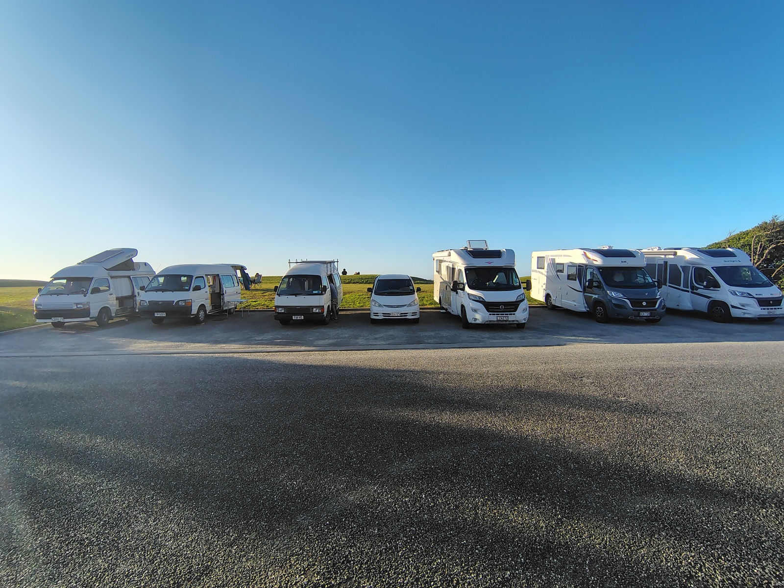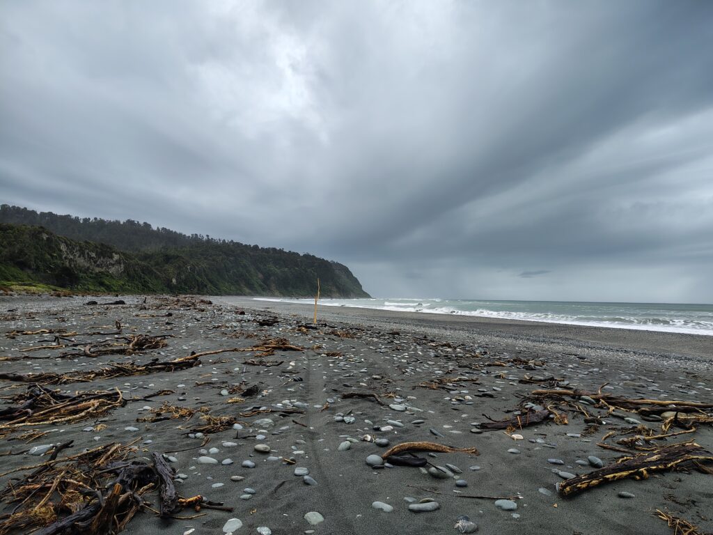 K večeru jsem dojel do hokitiky, turistického městečka přímo u nádherný pláže. Prohlédl jsem si, dnes už zavřené, turistické atrakce, zaparkoval přímo u pláže, a předstíral, že cedule camping prohibited, visící na vedlejším parkovišti, na tomhle určitě neplatí. Předstíralo nás tam sedm.