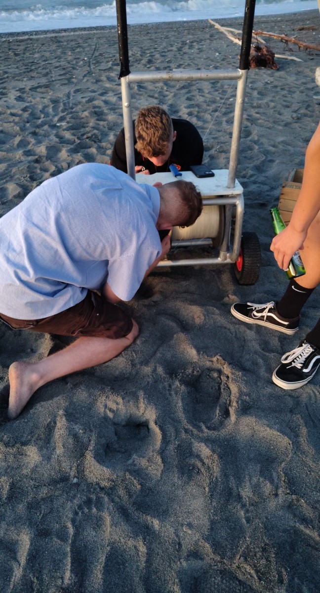 Vysvětlili mi, že se tomu neříká torpédo, ale Kontiki, a nehodlají to venčit, nýbrž s tím lovit ryby. Nastaví si na torpédu časovač na 20 minut, přivážou ho k bateriovému navijáku na kolečkách, a hodí do vln. Jak se postupně odmotává vlasec, přidávají na něj olůvka a návnady, a až časovač skončí, prostě zapnou naviják a torpédo i s úlovkem si přitáhnou k sobě. Teda, pokud zrovna nemaj peška.