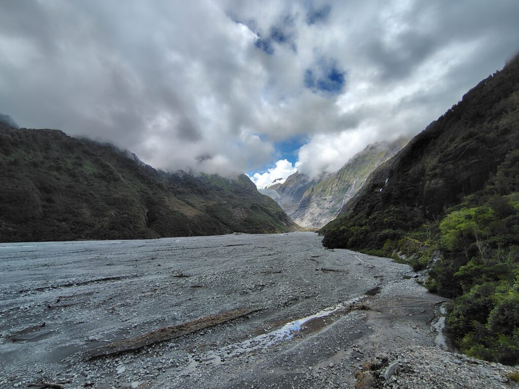 Skončil jsem v kempu Okarito, kde je prej spousta nádherných treků, ale déšť sotva dovolil uvařit večeři. Ráno jsem vyrazil kupodivu na jih, podívat se na ledovec Franze Josefa. V místní turistické vesničce bylo víc lidí, než když Lidl dělá výprodej, a ceny asi jako v Tescu bez podělaný clubcard. Výlet helikoptérou za lidových 800 dolarů jsem oželel, tak aspoň pie za 8. Normálně stojí tak pět.