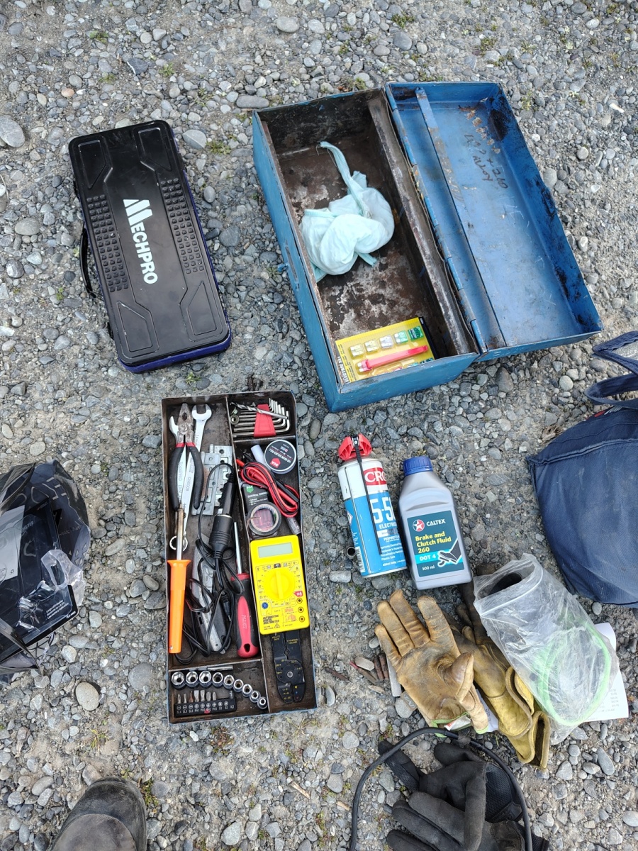Kabely k bufíku, rozdvojka do zapalovače, automyčka, trochu drobného nářadí a tak.